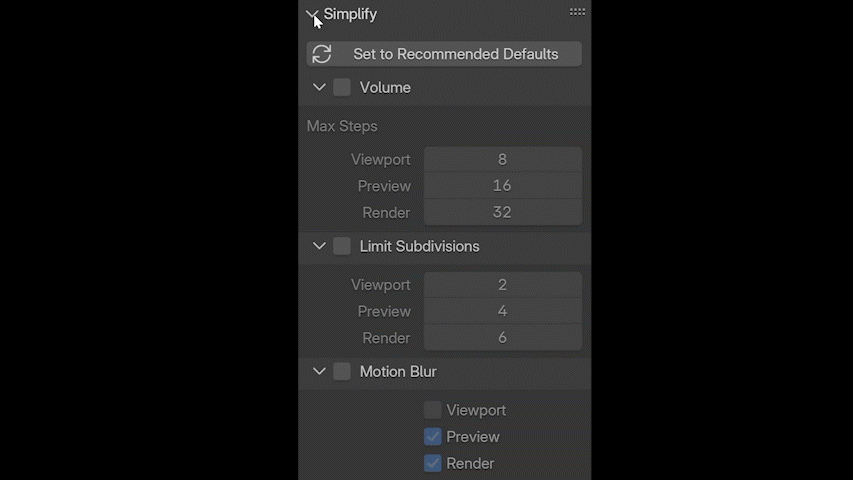 SceneBoost also offers additional optimization options to improve your workflow and take advantage of the distinction between Viewport, Preview, and Render. For example, you can use different Volume Steps for the Viewport, limit the Subdivisions globally, or deactivate Motion Blur only for the Viewport to achieve faster feedback.